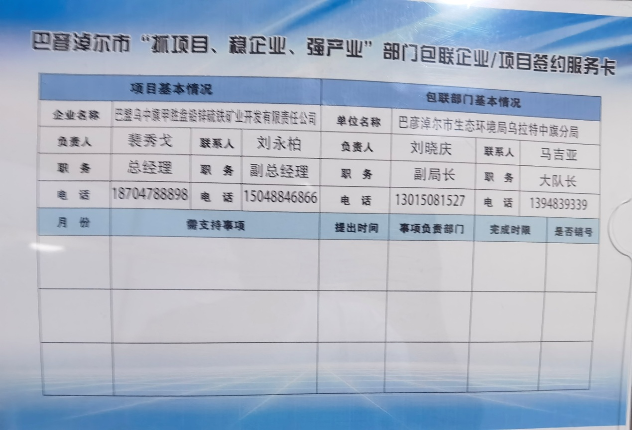 为完整、准确、全面贯彻落实新发展理念,落实落细各项惠企政策措施,推动解决企业发展和项目建设中存在的各类困难和问题,助推高质量发展,按照旗委政府“抓项目、稳企业、强产业”部门包联企业和项目工作机制的精神,巴彦淖尔市生态环境局乌拉特中旗分局负责人刘晓庆带领相关股室人员深入巴盟乌中旗甲胜盘铅锌硫铁矿业有限公司开展实地调研并召开了座谈会。