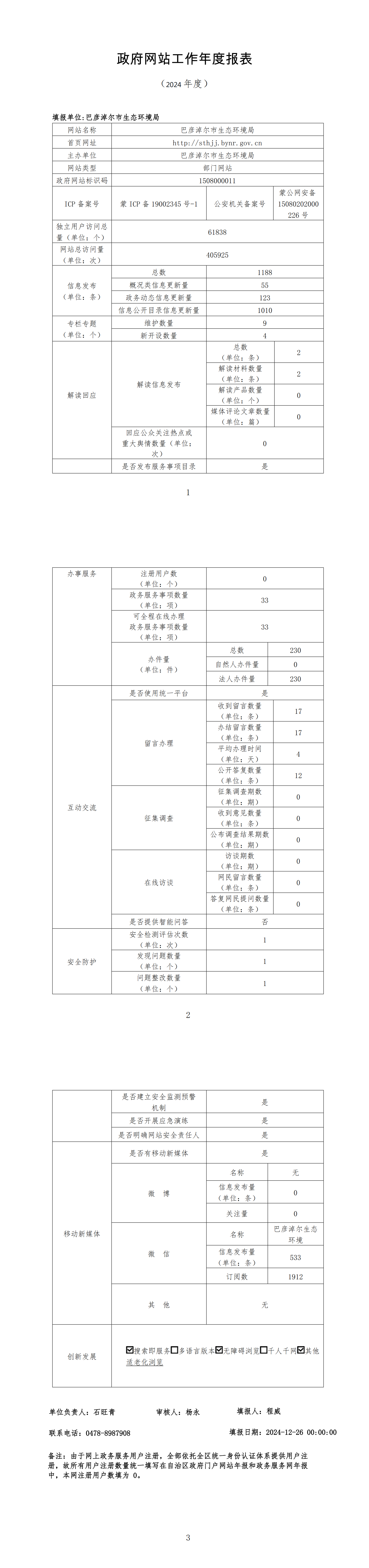 2024年度巴彦淖尔市生态环境局政府网站工作年度报表